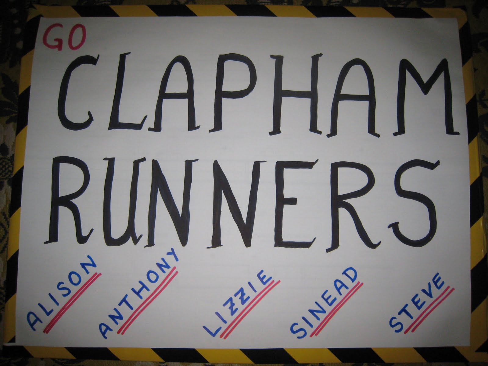 Good luck for tomorrow April 16, 2011March 30, 2018claphamrunners Good luck to everyone running tomorrow. Look out for the banner below (based on the design for last year), which we will be waving at miles 14 and 21. I hope we spot you all. K & M Share this: Click to share on X (Opens in new window) X Click to share on Facebook (Opens in new window) Facebook Like Loading...