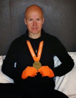 I crossed the line in 3:31:58 feeling wobbly and in dire need of sustenance – which took an age to come by along the walk of at least another mile while being processed!… Annie’s quest to see me had again been thwarted – with (understandably) overzealous security denying her et al access to their booked seats in the finish line grandstand.